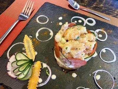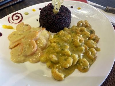 The restaurant has both an à la carte and daily menu. Our dishes are entirely made by our team, with the exception of the seafood gratin and our fish soups which are made by a small craft company located in Mananjary.