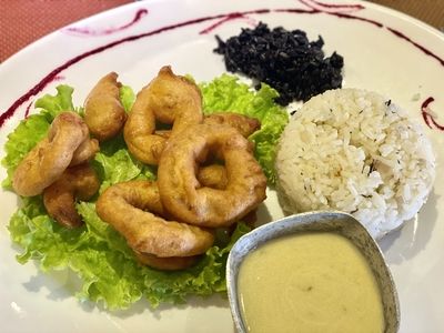 Accompagnement : riz, frites, pommes sautées, spaghetti, légumes sautés